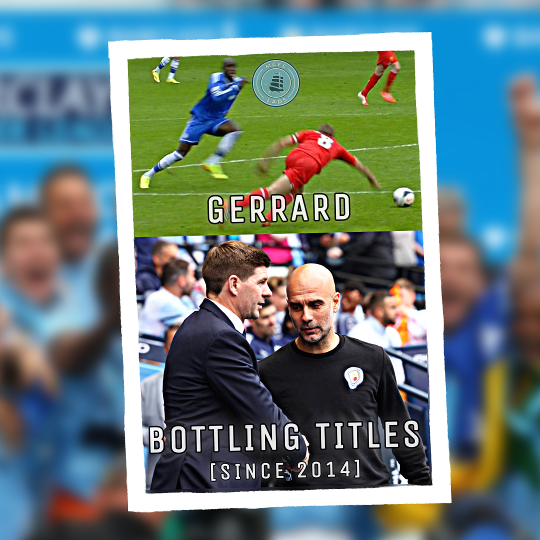 100 x ‘GERRARD - BOTTLING TITLES SINCE 2014’ Manchester City Stickers.
