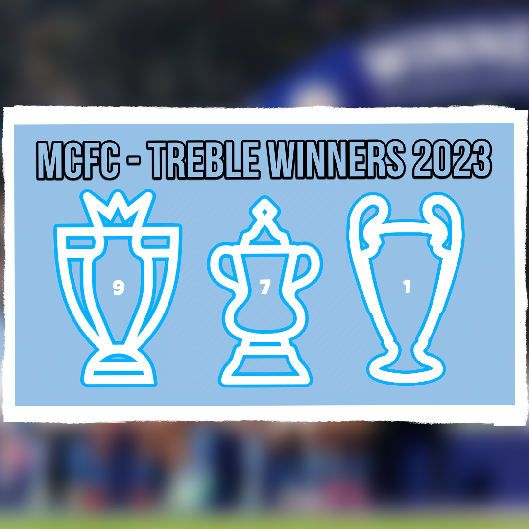 Remind everyone that Manchester City won the Treble with 50 commemorative treble winners stickers.